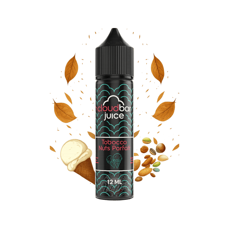 CloudBar Juice Tobacco Nuts Parfait 12ml for 60ml – Автентича тютюнева рецепта, комбинация от тютюн с микс от ядки и ванилов сладолед. Наситеният тютюн полага солидна основа, докато ядките добавят дълбочина и фина хрупкавост. Нежният ванилов сладолед свързва всичко заедно, създавайки меко и изкусително изживяване с всяко дръпване.