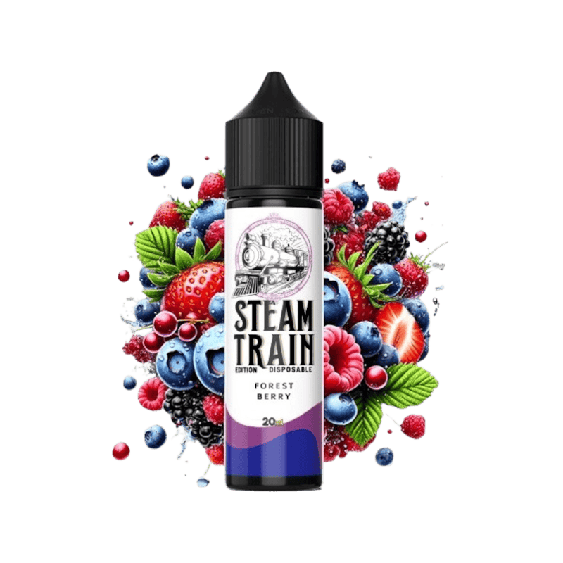 Steam Train Forest Berry 20ml fo 60ml Disposable Edition – Отдайте се на тази уникална асорти комбинация от плодови аромати на сочни къпини, сладки боровинки и пресни ягоди и всичко това подсилено с прохладно, ледено усещане и много свежест.