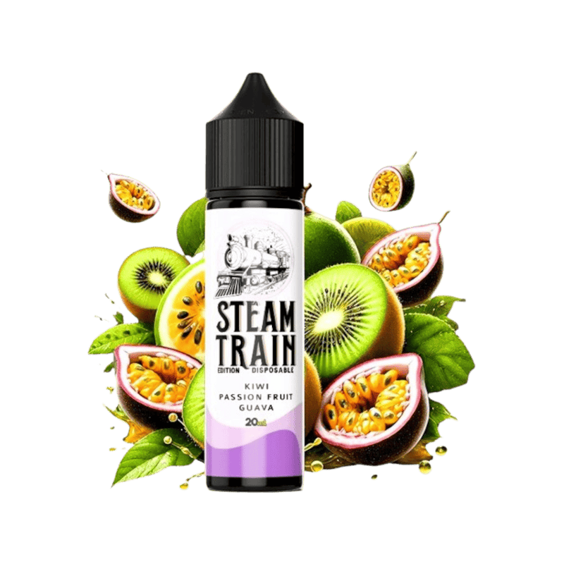 Steam Train Kiwi Passion Fruit Guava 20ml fo 60ml Disposable Edition – Отдайте се на този уникален аромат, съчетаващ екзотичния чар на киви, маракуя и гуава за невероятно освежаващо изживяване.