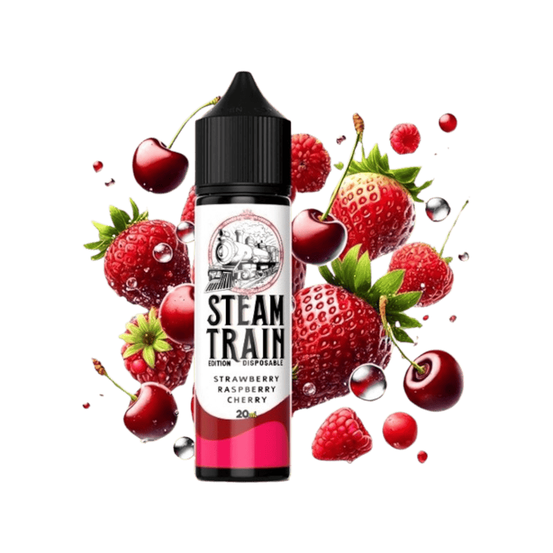 Steam Train Strawberry Raspberry Cherry 20ml fo 60ml Disposable Edition – Тази комбинация е като сбъдната мечта за всеки любител на горски плодове! Сладостта на пресните ягоди, тръпчивостта на малината и богатият вкус на ароматни череши създават завладяваща еуфория, пълна с плодова наслада.