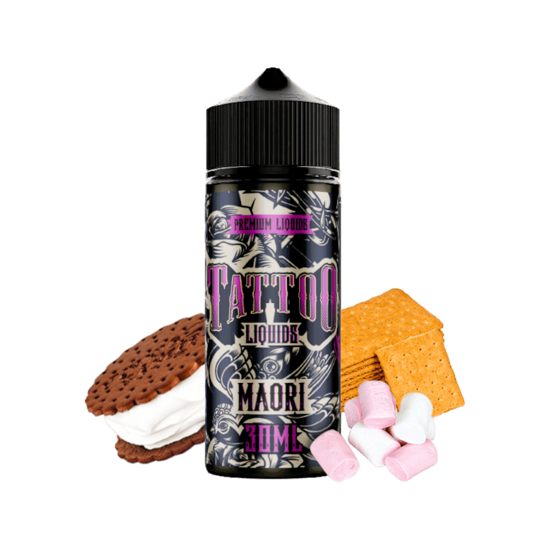 Tattoo Maori 20ml for 120ml – Уникален сандвич от хрупкапкави бисквитки с винилов сладолед и маршмелоу.