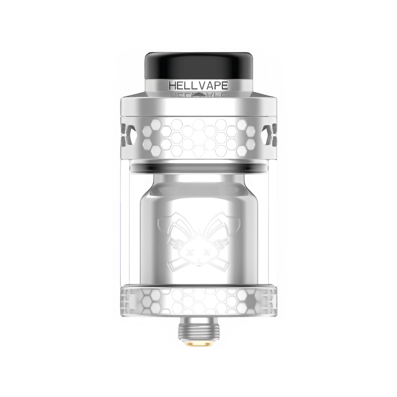 Hellvape Dead Rabbit 4 RTA 5.5ml Silver – Новата версия 4 на водещия атомайзер, Dead Rabbit. Амбициозно проектиран за отлично предаване на вкуса и снабден с прецизен регулируем въздушен поток тип „пчелна пита“. Дек с единична/двойна намотка , позволяващ много лесено билдване. Диаметър на такна 26мм. с капацитет 5,5мл. и горно пълнене. Идеален за изпаряване от тип RDL или DL.