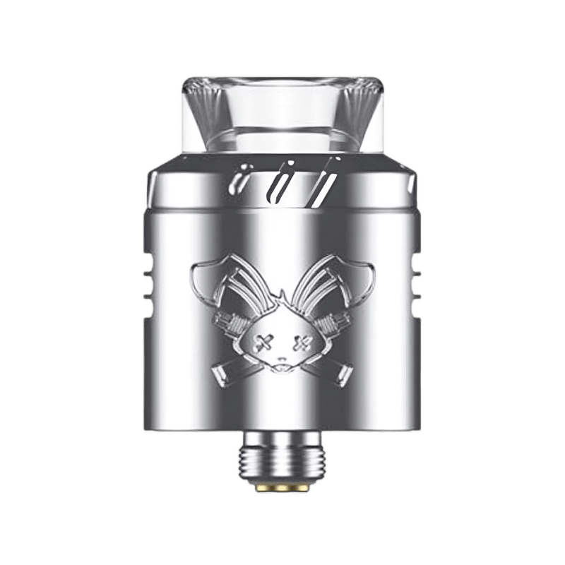 Hellvape Dead Rabbit Solo RDA Silver – Малък формат, но голямо име сред конкурентите! Единична намотка, позволяваща смели билдове. Много прецизен регулируем въздушен поток (30 отвора от 1,2 мм, които могат да се затварят отново един по един). Отлично предаване на вкуса благодарение на камера, която кондензира максимално вкусовете.