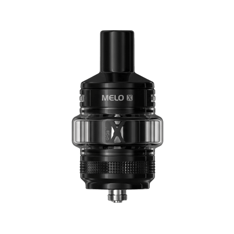 Eleaf Melo X Tank 5ml 32mm Black – Новия атомайзер Eleaf Melo X е изработен от здрава конструкция с неръждаема стомана. Предлага капацитет от 5мл. и удобно горно пълнене. Снабден е с прецизен регулируем горен въздушен поток, идеален за MTL до RDL дърпане. Съвместим с всички намотки от серията EC.