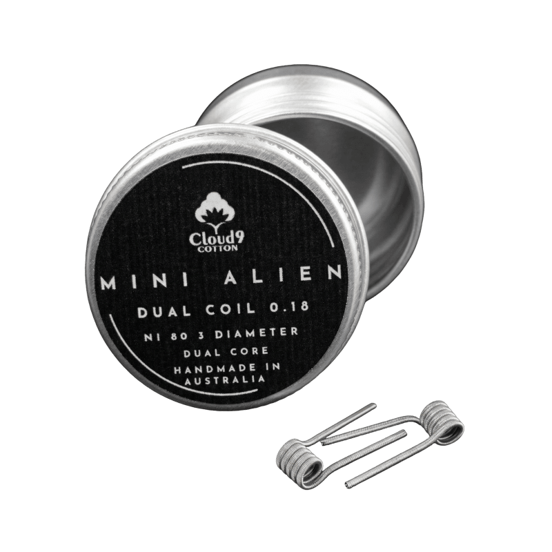 Cloud 9 Mini Alien NI80 Handmade Dual Coils Ø3.0 0.18Ω 2pcs – Ако си от хората, които не правят компромис с нищо – от течността до последния детайл в памука – тогава Mini Alien NI80 на Cloud 9 са твоят нов стандарт. Забрави за масовото производство. Тук говорим за Handmade прецизност директно от Австралия, създадена от вейпъри за вейпъри.